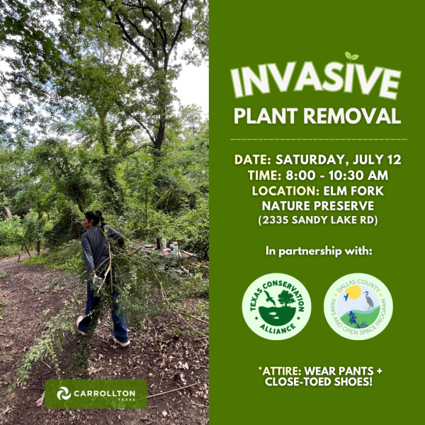 Help us protect native nature! Join us for Invasive Plant Removal at Elm Fork Nature Preserve! Let’s work together to remove invasive species and keep our ecosystem thriving. All helping hands welcome! Popsicles will be available to all volunteers.